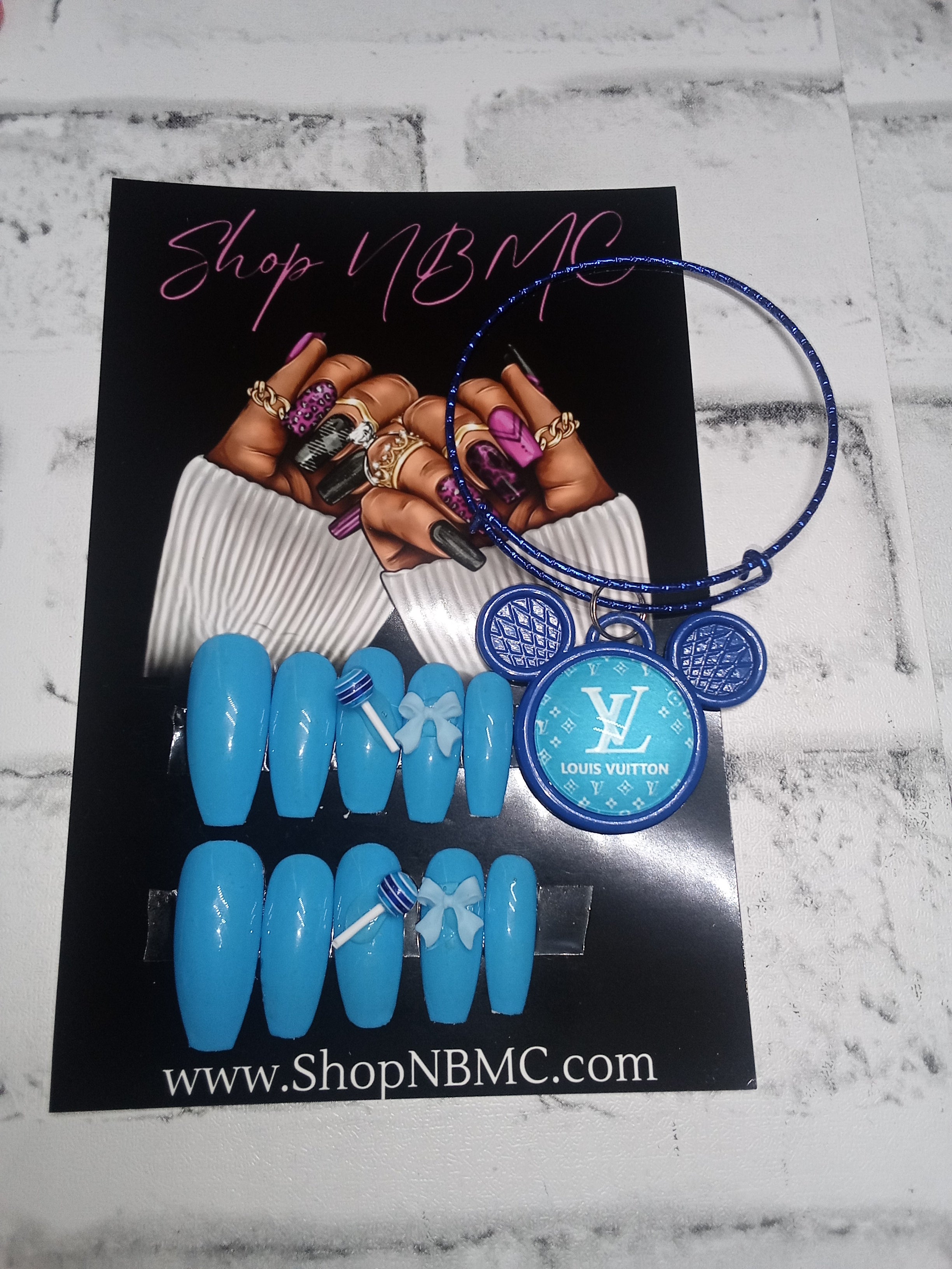 Blue Medium Size Press-on Nails With Matching Bracelet.